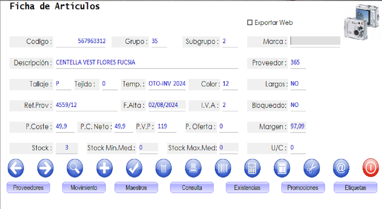 Almacén: Controle su stock de forma eficiente de cada modelo y talla, además con la posibilidad de controlar por doble ubicación, tienda y almacén. Realice fácilmente campañas de rebajas, promociones puntuales. Cree su propia etiqueta de la prenda conseguir la información que necesitemos del articulo en el acto mirándola (temporada, pvp, talla, logotipo, proveedor,…)